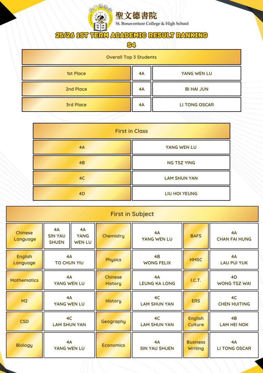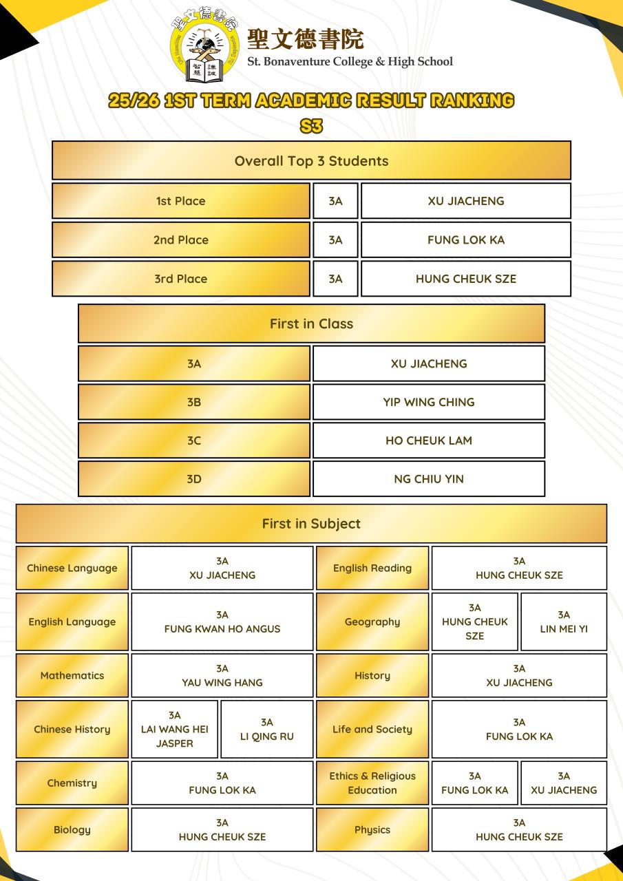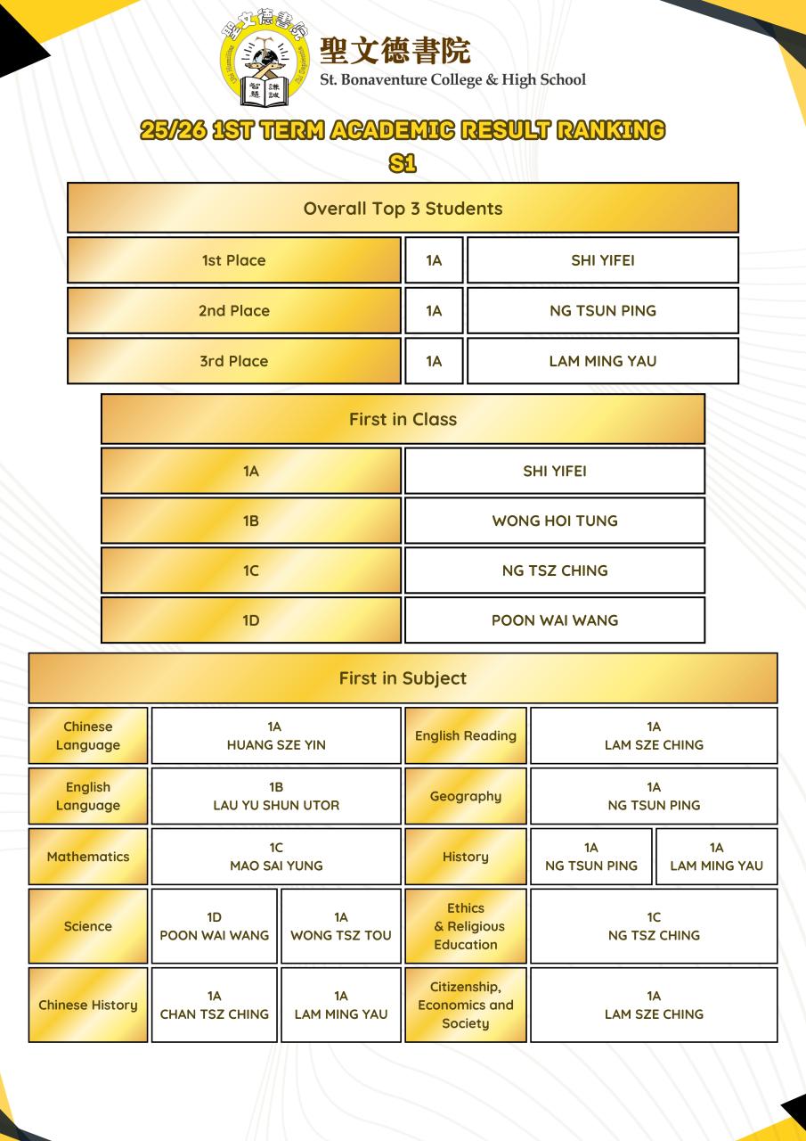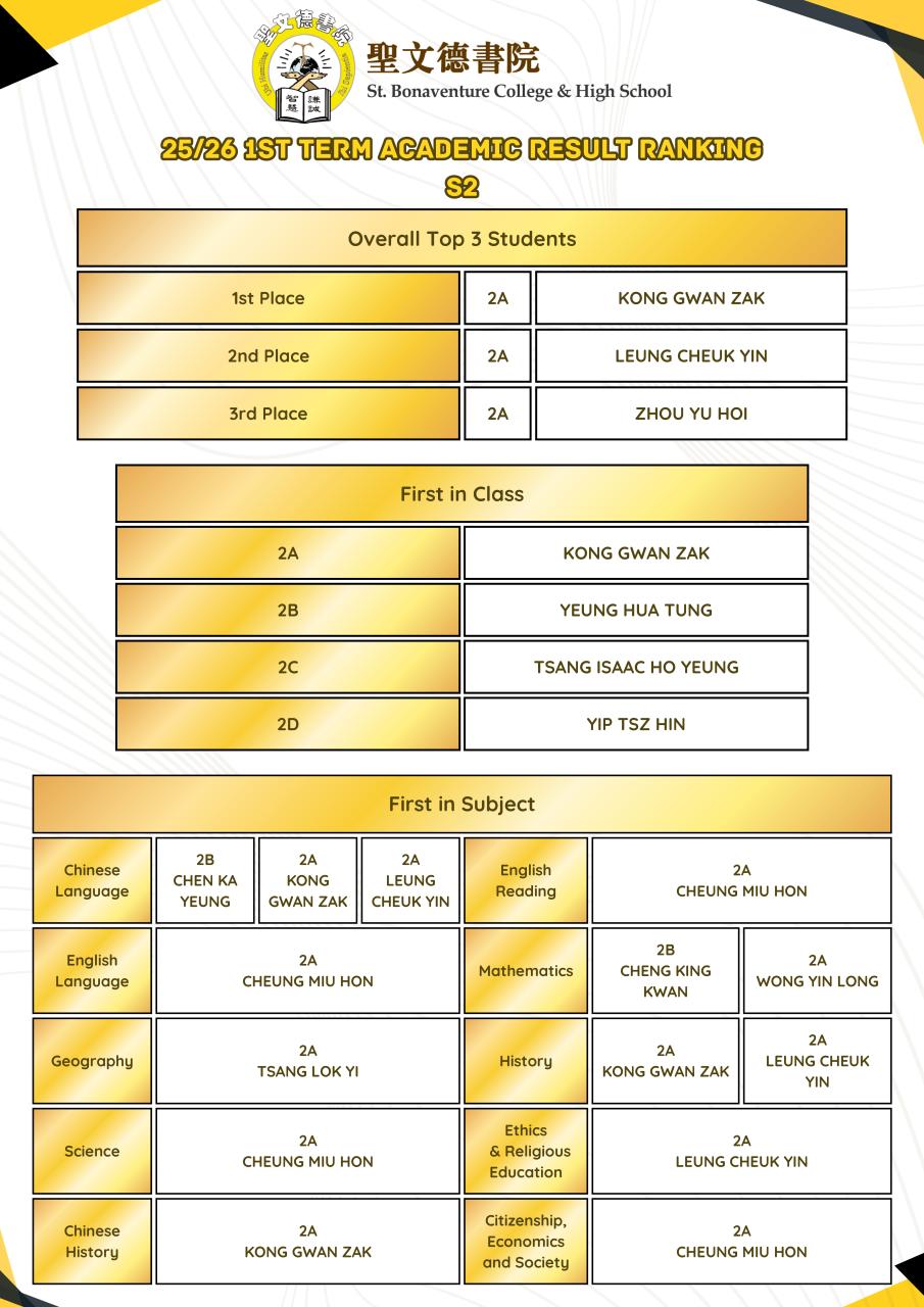 2025-2026 1st term Academic Result Ranking [S1-S5]