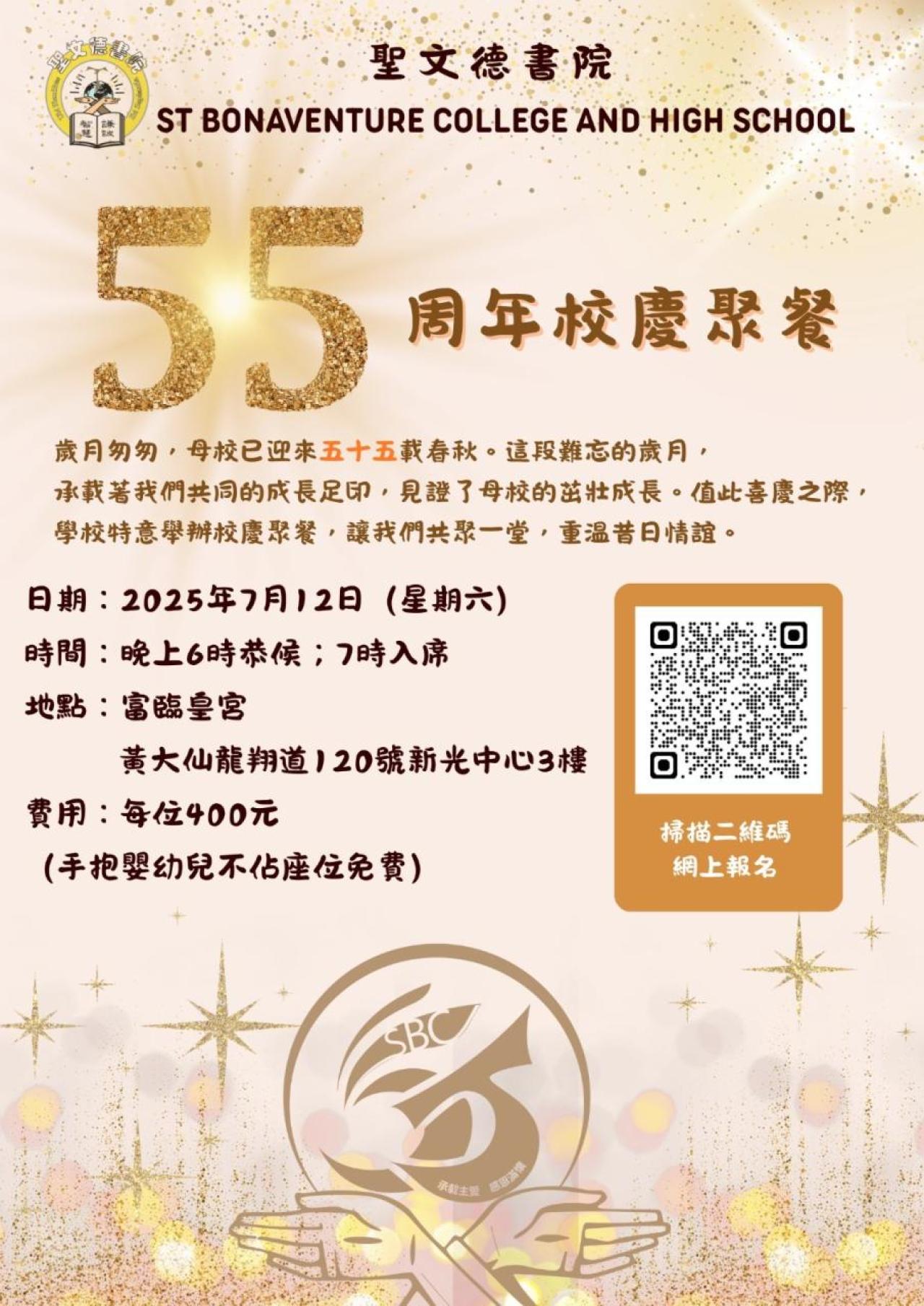 為慶祝校慶55周年,我們在學校舉辦BBQ,讓師生一起歡聚。BBQ大約5:00開始。歡迎各位校友聯同同學和老師一起參與。只須代表報名。每位$120。