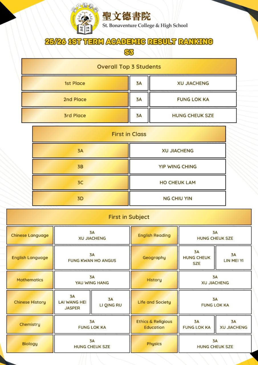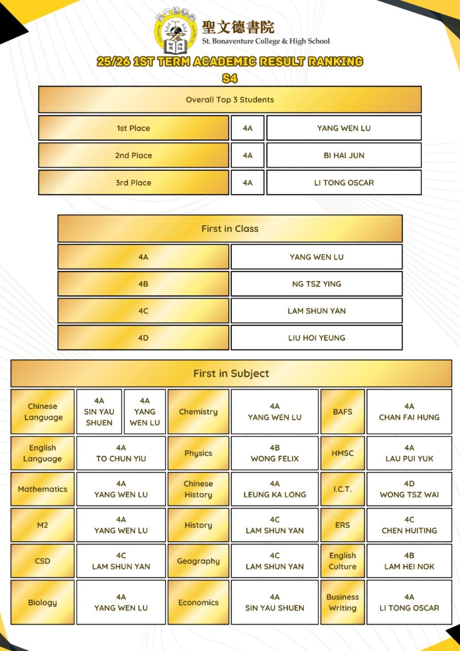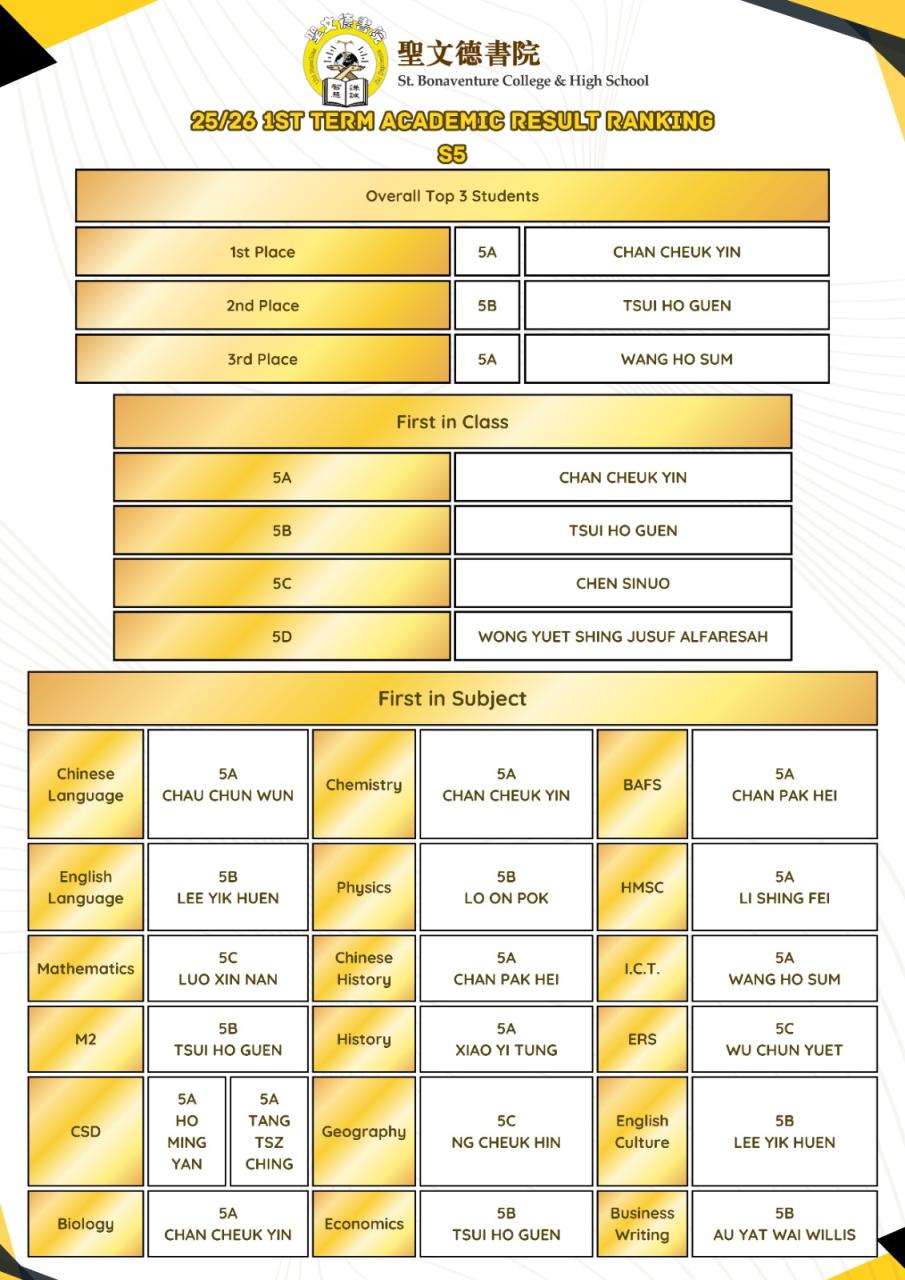 2025-2026 1st term Academic Result Ranking [S1-S5]