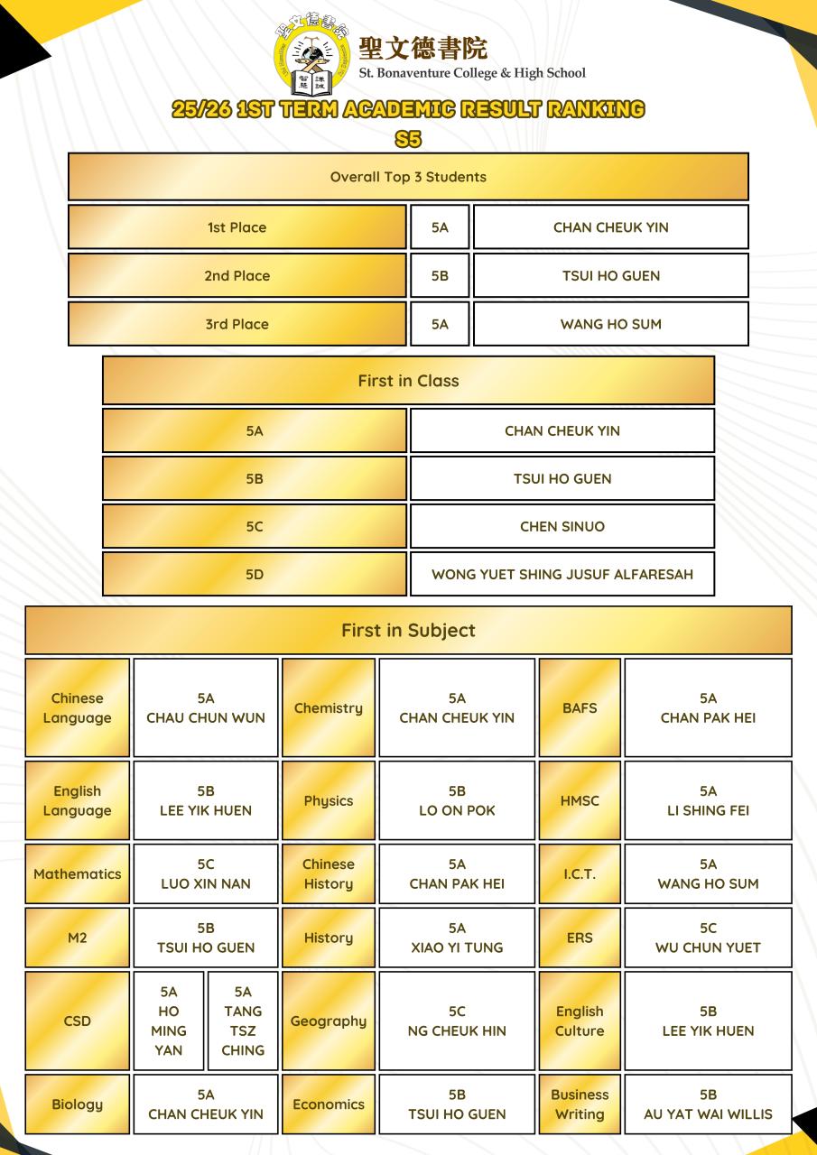 2025-2026 1st term Academic Result Ranking [S1-S5]